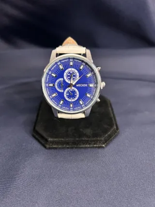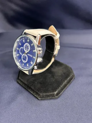 Orologio al quarzo dal design fresco ed elegante, con cinturino in similpelle bianco, morbido, regolabile e confortevole. Il quadrante blu è arricchito da dettagli bianchi, che creano un contrasto raffinato e luminoso, ideale per chi cerca uno stile distintivo e moderno.