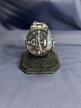 Orologio al quarzo dal design deciso e moderno, con scocca e cinturino full metal resistenti e regolabili. Il quadrante nero è impreziosito da dettagli cromati, blu e rossi, che donano un tocco sportivo e dinamico pur mantenendo un’eleganza sobria. Perfetto per chi cerca un accessorio robusto, di stile e adatto a ogni occasione. - Movimento al quarzo. - Design full metal.