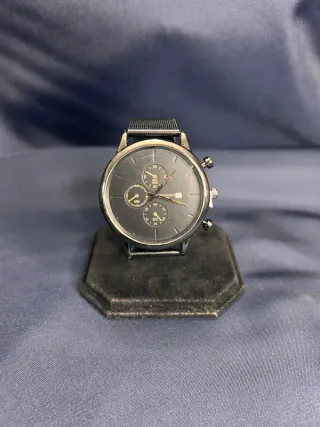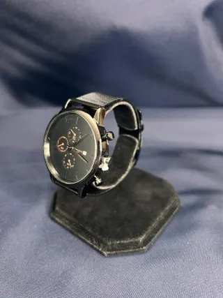 Elegante e versatile, questo orologio al quarzo unisce stile e funzionalità. Il cinturino in similpelle nera è resistente e confortevole, mentre il quadrante nero con dettagli bronzo dona un tocco raffinato e moderno. Caratteristiche principali: Movimento al quarzo preciso e affidabile Quadrante nero con dettagli bronzo a contrasto Cinturino in similpelle nera, comodo e resistente Design elegante e adatto a ogni occasione Un orologio pensato per chi cerca un accessorio dal look classico con un tocco di personalità. Elegant and versatile, this quar - Movimento al quarzo. - Cinturino in pelle nera. - Dettagli in metallo argentato.