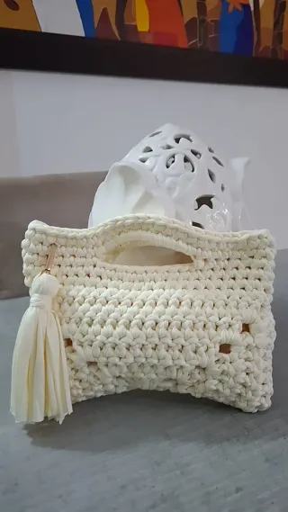 Elegante pochette realizzata all'uncinetto, perfetta per completare il tuo look. - Realizzata in filato di cotone. - Dettaglio nappina pendente. - Chiusura con zip. - Fodera interna.