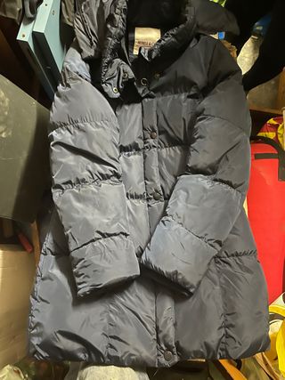 Piumino pesante con doppia cerniera e cappuccio staccabile. Lunghezza sui fianchi. Vendo per cambio taglia.