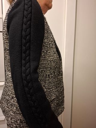 Blazer/Giacca Gattinoni donna tg XL/48 Giacca donna Gattinoni, ottimo stato Maglia 100% lana e materiael tessuto come da etichetta Taglia italiana XL/48 e altre taglie come da etichetta Maniche con motivo ad intreccio Abbottonatura sul davanti con 3 asole e 2 bottoni (nasce cosi')