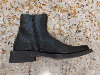 Eleganti stivaletti da uomo in pelle con finitura effetto coccodrillo. - Materiale esterno: vera pelle. - Rivestimento interno in pelle. - Suola in cuoio. - Chiusura laterale con zip.