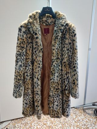 Elegante cappotto da donna con stampa maculata, realizzato in eco pelliccia. Un capo che aggiunge un tocco di stile al tuo guardaroba. - Fantasia animalier. - Fodera interna in tessuto liscio. - Collo ampio e avvolgente.
