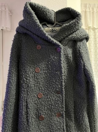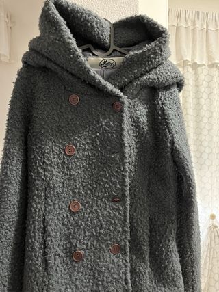 Giacca con cappuccio dal design moderno e accattivante. - Tessuto morbido e voluminoso. - Chiusura doppiopetto con bottoni. - Cappuccio integrato. - Tasche laterali.