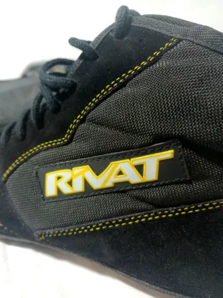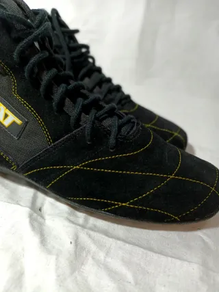 Scarpe tecniche Rivat modello Savate Rookie.Scarpe tecniche da Savate adatte anche a Boxe e Grappling. Pari al nuovo come da foto. TG 42. Rif asel3 - Design alto. - Lacci neri. - Cuciture gialle a contrasto.