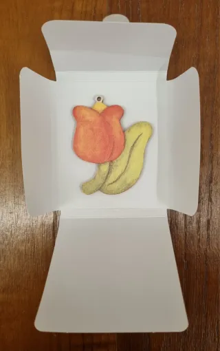 Chiudipacco a forma di tulipano, ideale per decorare pacchi regalo. - Design floreale. - Colori vivaci. - Realizzato in legno legno - Nuovo nella sua condizione originale