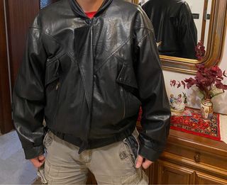 Giaccone in vera pelle da uomo, stile vintage. Anni 90 - Materiale: vera pelle - Design: stile motociclista - Chiusura: zip frontale