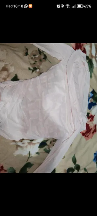 Maglietta rosa con dettagli graziosi. - Tessuto leggero e trasparente. - Decorata con piccoli fiocchi bianchi. - Maniche lunghe.