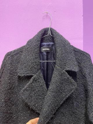 Elegante cappotto Diesel per ragazza, dal design classico e versatile. - Tessuto bouclé con fili metallici. - Collo a revers. - Fodera interna in raso. Tg 14 ma veste fino ad una s over
