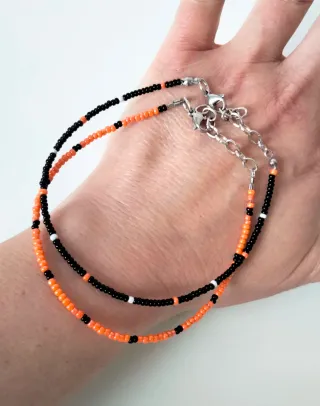 Coppia cavigliere perline nere e arancioni