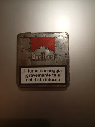 Portasigarette in metallo con un design ispirato al mondo vintage. - Logo Marlboro iconico. - Finitura invecchiata per un look retrò. - Chiusura a scatto.