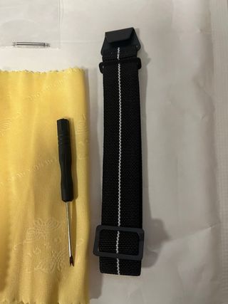 Cinturino elastico di ricambio per Moonswatch. - Materiale in tessuto resistente. - Chiusura regolabile. - Include attrezzi per il montaggio.