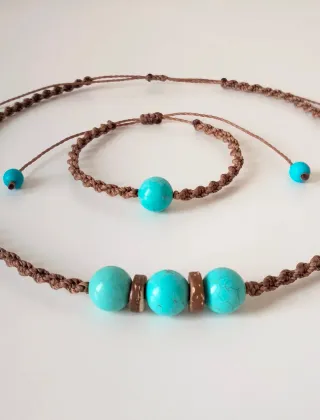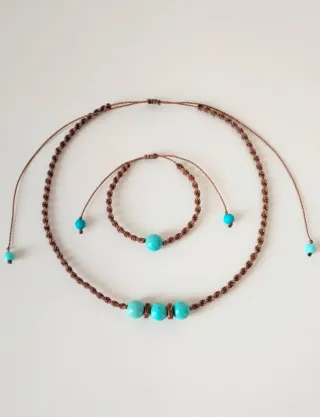 Collana pasta di turchese e legno naturale