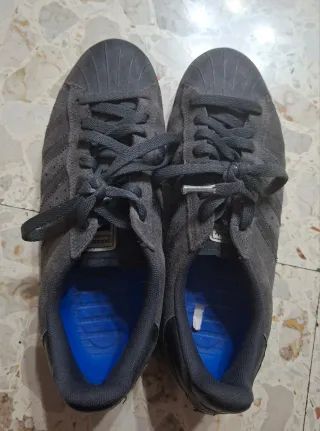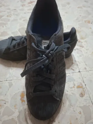 Scarpe Adidas Superstar da uomo. - Tomaia in suede grigio. - Dettagli neri. - Suola in gomma. - Chiusura con lacci neri.