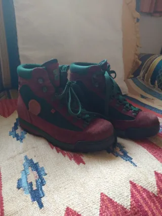 Scarponcini da montagna Aku per donna, con una combinazione di colori rosso e verde. Perfetti per escursioni. Tomaia in resistente materiale scamosciato e goretex tessuto impermeabile. Leggeri adatti per escursioni. Dettagli in contrasto di colore. Suola robusta per un'ottima aderenza. Ben tenuti, suola come nuova, soletta interna removibile. #aku #akuscarponcini #akuscarponcinidonna #akuscarponcinidonnagoretex