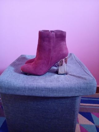 Tronchetti in simili camoscio rosso bordeaux con tacco dorato