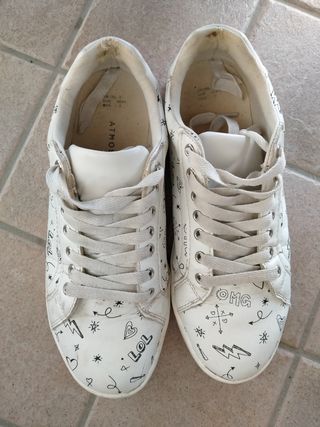 Vendo un paio di sneakers Atmos bianche, misura 40. Sono in buone condizioni, anche se presentano qualche segno di usura. - Modello casual - Perfette per un look di tutti i giorni