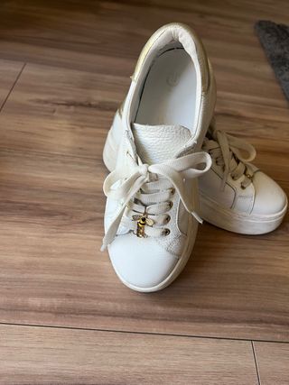 Vendo un paio di sneakers Divine Follie, colore bianco. Sono in ottime condizioni, con dettagli in oro. - Hanno un design elegante e moderno. - Perfette per un look casual chic.