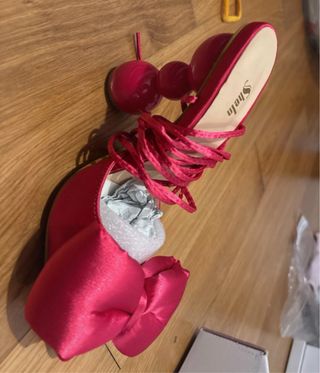 Bellissimi sandali con tacco alto, colore fucsia acceso. Sono perfetti per una serata speciale! - Design particolare con fiocco - Chiusura con lacci alla caviglia - Tacco alto e comodo - Materiale satinato