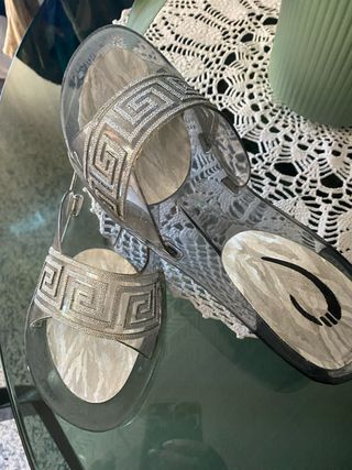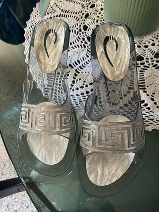 Bellissimi zoccoli perfetti per l'estate! Sono trasparenti con dettagli argentati. - Modello elegante e comodo. - Realizzati in materiale plastico resistente. - Dettagli decorativi argentati. - Misura 40.