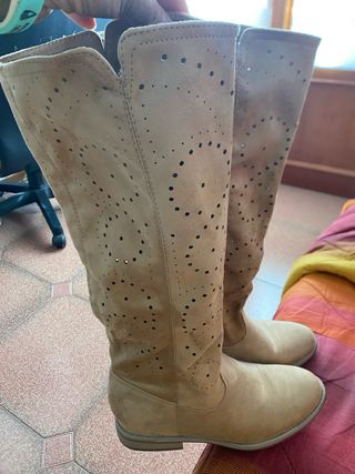 Stivali al ginocchio beige traforati taglia 41