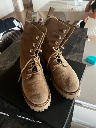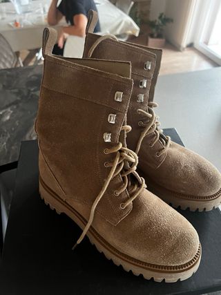 Eleganti stivaletti in camoscio, perfetti per completare ogni outfit. - Materiale: camoscio - Colore: beige/marrone - Design stringato - pagato 169 euro ed indossato un paio di volte per errata taglia.