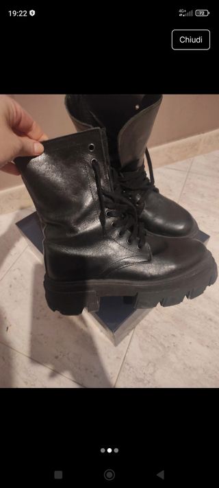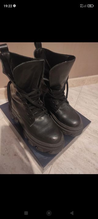 Anfibi completamente in pelle nera. - Design stringato. - Suola spessa e robusta con scanalatura - Gambale alto. Prezzo di origine 59.90 Indossati solo un paio di volte , calzata comoda