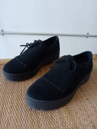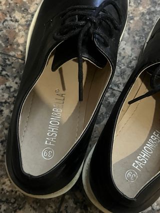 Eleganti scarpe stringate da donna. Scarpe stringate donna similpelle color nero, numero di scarpa 39, usate poco, buone condizioni. Soletta sotto in gomma, a strisce bianche e nero, abbastanza alta, adatta a isolarsi dal freddo. Possibilità di consegna a mano zona centro Milano oppure sera o weekend in piazzale Martini, zona sud di Milano.