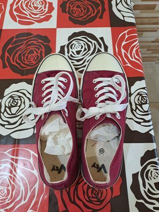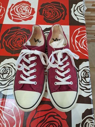 Scarpe da ginnastica basse Vty. - Tomaia in tessuto rosso. - Lacci bianchi. - Suola in gomma bianca. - Interno foderato. Scarpe ginnastica indossate 1 sola volta in casa pari al nuovo…Taglia 40