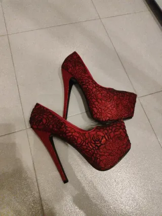 Scarpe rosse con tacco alto e plateau