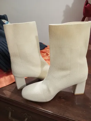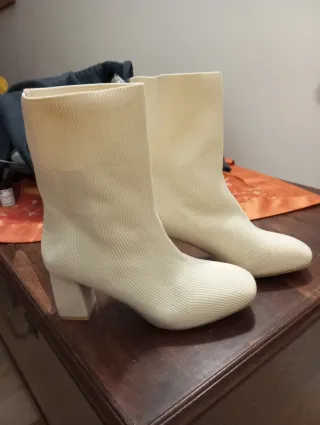 Stivaletti a calza tacco crema donna