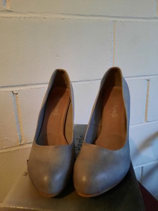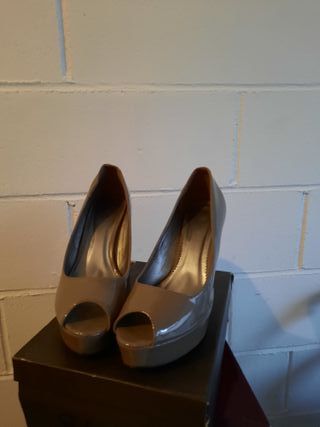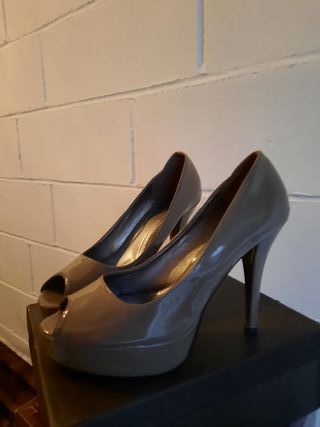 Scarpe bellissime, con tacco 10 cm e plateau, grigio chiaro, in ottimo stato, usate solo una volta.