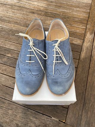 Scarpa da donna allacciata modello oxford Ben fatte suola in gomma color jeans cangiante numero 39 Made in Italy Usate pochissimo!