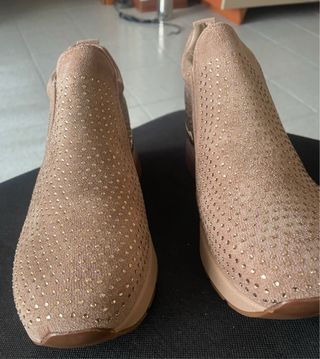 Eleganti tronchetti con tacco alto. - Nuovi, mai usati. - Tacco di 10 cm. - Dettaglio glitterato sul dietro - Materiale simil camoscio! - In foto ho evidenziato la perdita di alcuni brillantini, difetto già presente al momento dell’acquisto!