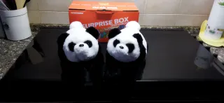 Morbide pantofole a forma di panda, perfette per stare comodi in casa. - Design a forma di panda. - Dettagli in bianco e nero. - n. 39/40 - nuove con scatola