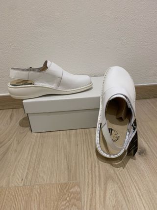 Ciabatte ortopediche con plantare. - Tomaia in pelle bianca. - Chiusura regolabile con velcro. - Suola interna confortevole. Zoccolo aperto posteriormente con chiusura regolabile a velcro sul collo del piede e cinturino posteriore regolabile a velcro blocca tallone, CON PLANTARE ESTRAIBILE Colore bianco. tessuto AIR NET a cella larga, antibatterica, antimicotica, traspirante Sottopiede: plantare anatomico estraibile DRYGO con cucitura antistatica, calzato assorbe il sudore sfilato disperde l'umidità, l'ottima capacità di assorbimento unita alla elevata velocità di rilascio dell'umidità conferisco a questo plantare caratteristiche