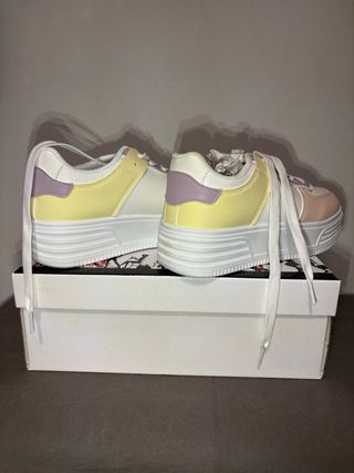 Vendo un paio di sneakers dal design moderno. Sono in ottime condizioni. - Tomaia in pelle bianca - Dettagli neri - Suola alta e comoda usate solo per prova