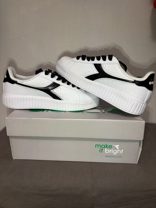 Scarpe Diadora da donna in pelle bianca con dettagli neri. - Design classico. - Logo Diadora sui lati. - Suola in gomma.