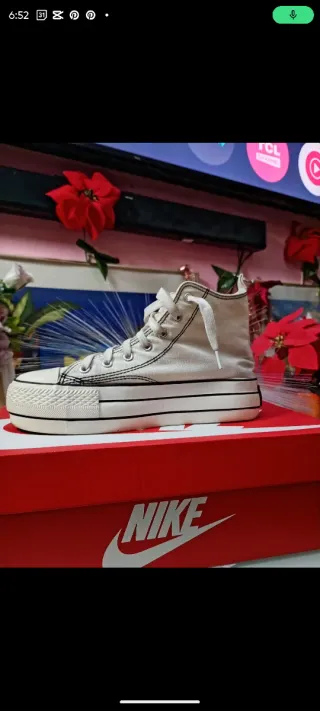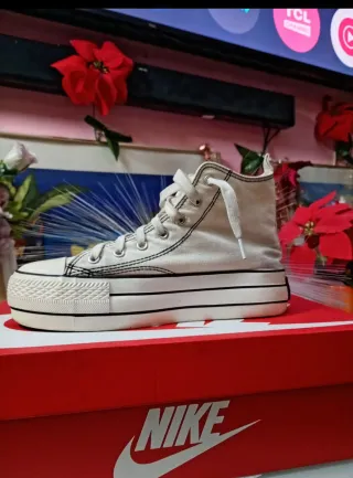 Scarpe alte Converse Taylor Platform. - Design a piattaforma. - Tomaia in tela bianca.