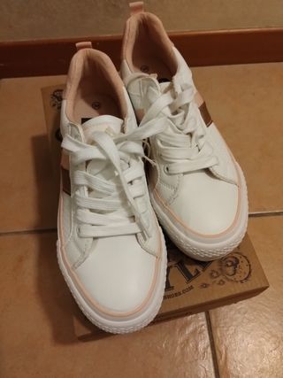Scarpe donna n. 38 nuove mai usate basse tipo tennis bianche rosa dorate