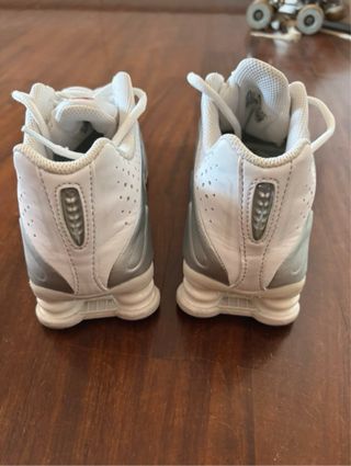 Sneakers Nike da donna in una combinazione di bianco e argento. Design moderno e sportivo. - Toma in pelle e tessuto. - Dettagli in argento. - Chiusura con lacci.