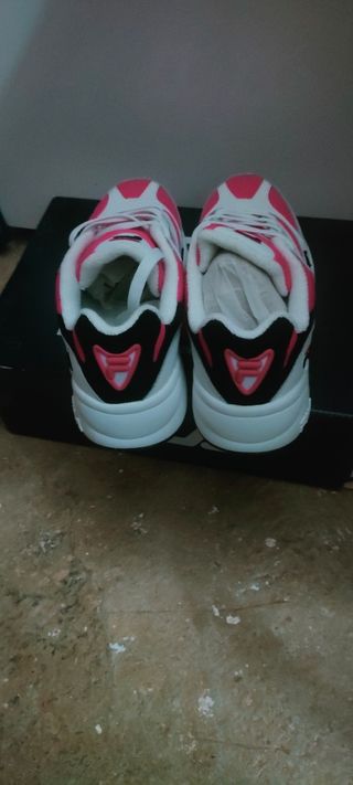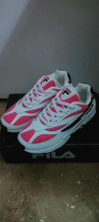 Scarpe da ginnastica Fila in ottime condizioni, perfette per un look sportivo e alla moda. - Design accattivante con inserti rosa e bianchi. - Logo Fila ben visibile.