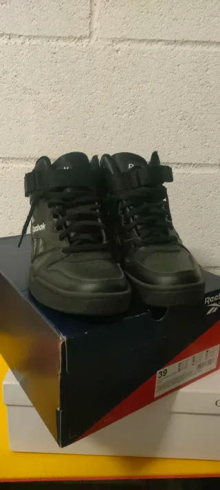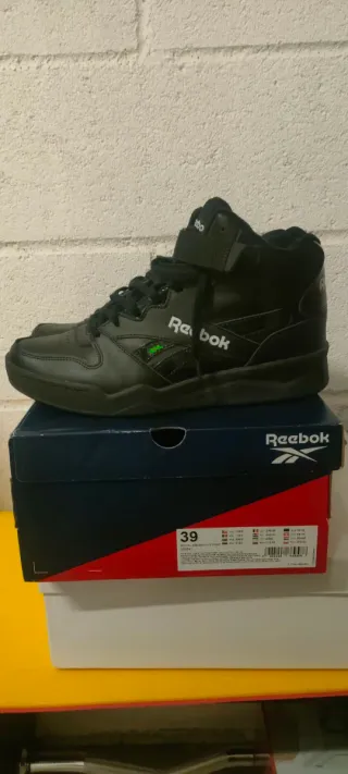 Scarpe da ginnastica alte Reebok. - Tomaia in pelle nera. - Dettagli cangianti. - Chiusura con velcro e lacci.