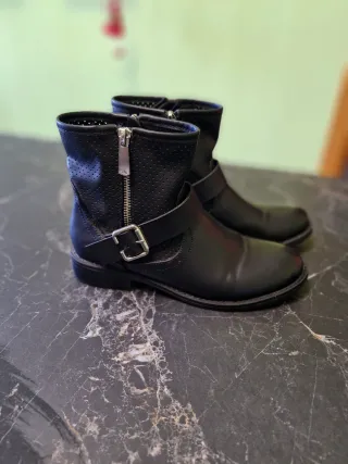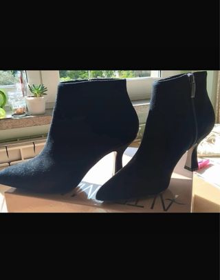 Eleganti stivaletti neri con un design moderno. - Toma a punta. - Dettagli a fasce. - Zip posteriore. presentano a leggera spellatura sul davanti nella fascia più alta ,indossata è impercettibile