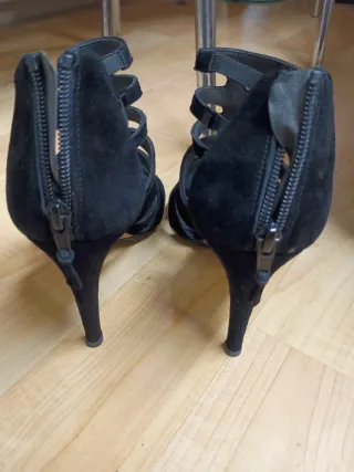 Eleganti sandali con tacco alto. - Materiale scamosciato. Suola in pelle - Zip posteriore per chiusura. - Design con fasce incrociate.