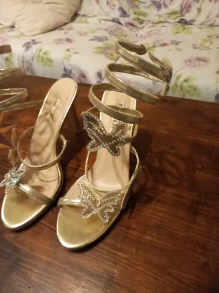 Bellissime scarpe col tacco alto 8 cm, color oro, ONLY, numero 37. S