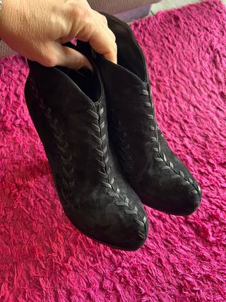Eleganti stivaletti in camoscio nero. - Dettagli intrecciati sul davanti. - Tacco comodo.