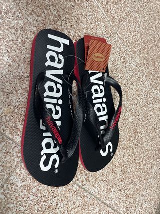 Ciabatte Havaianas con un design audace e colori vivaci. - Suola nera con logo bianco. - Dettagli rossi sulle fascette. - Suola interna rossa.