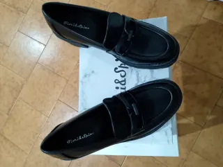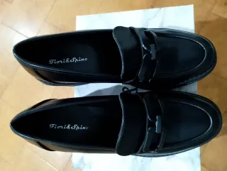 Eleganti scarpe da donna Fiori & Spina. - Modello mocassino con dettaglio a catena. - Colore nero lucido.